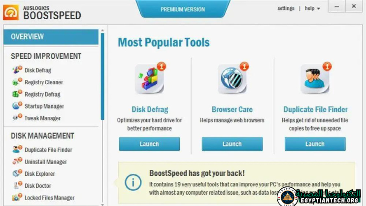 هذا البرنامج “Auslogics BoostSpeed” ليس أقل من رائع، وهو من أفضل وأقوى البرامج لتنظيف وصيانة وتسريع جهاز الكمبيوتر الخاص بك وتحسين أدائه بشكل ملحوظ للغاية. ولأنه يحتوي على أدوات تجعل الويندوز وجهازك يبدو وكأنه جديد، فقد أصبح ذو شعبية كبيرة وواسعة النطاق ولا يقل أهمية عن برامج الصيانة الأخرى.