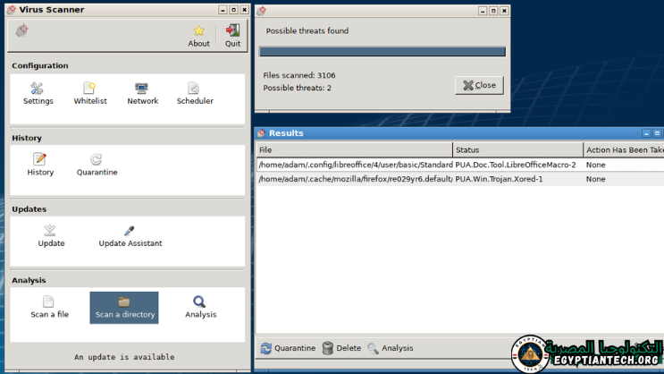 • الإبلاغ الأولي عن المشاكل والتهديدات التي يكتشفها، مع تطوير طرق مختلفة للتعامل مع كل تهديد بطريقة ذكية. يمكنك حذف الفيروسات مع الاحتفاظ بالملفات، أو حذف الفيروس مع الملف إذا كان الفيروس قد سيطر على الملف، مع الحذف القسري إذا كان الملف يمثل خطرا على الكمبيوتر.