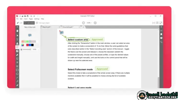 • إمكانية التقاط لقطة للشاشة أو أي جزء من الشاشة، بالإضافة إلى تحرير الصور المضافة إلى ملفات PDF.