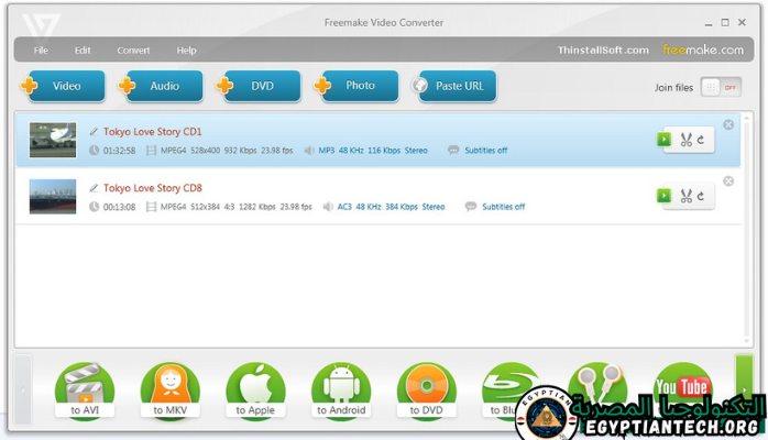 Freemake Video Converter هي أداة يمكنها تشفير تنسيقات فيديو متعددة وملحقات أخرى. تتعرف الأداة على AVIS و MP3 و MPEG و WV و 3G و DVD و HD و MK و MP3 و WMA و LAC وغيرها، في حين أن الواجهة بديهية وجذابة للغاية وتستحق Windows 7. بمجرد إضافة الملفات إلى قائمة الانتظار ( “السحب والإفلات” مع دعم الطريقة)، يمكنك زيارة الصورة المصغرة الخاصة به، وإجمالي الوقت وإعداد ومعاينة الفيديو الصوتي/الفيديو في مشغل خارجي.