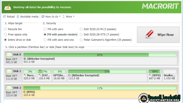 - يدعم فحص ومسح كافة الأقراص في نفس الوقت