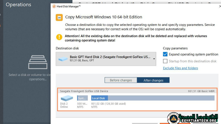 - نقل جميع ملفات القرص الصلب إلى قرص صلب آخر.