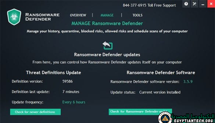 يقوم Ransomware Defender بتحديث تعريفات الفيروسات تلقائيًا لضمان تأمين نظامك ضد التهديدات الجديدة.