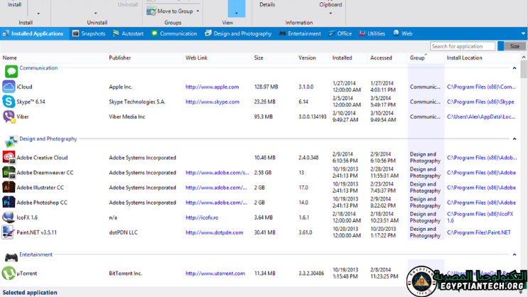 فلن تحتاج إلى القيام بالعديد من الخطوات لإلغاء تثبيت برنامج من جهاز الكمبيوتر. يمكنك تصفح كافة البرامج المثبتة على الكمبيوتر وعرضها داخل البرنامج حسب تاريخ التثبيت أو حسب اسم البرنامج (ترتيب أبجدي) لسهولة الوصول إلى البرنامج المراد حذفه بشكل أسرع.
