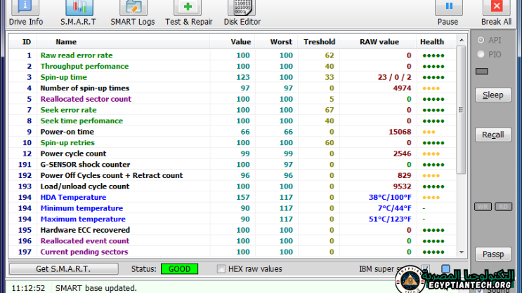- إظهار الحالة العامة للقرص الصلب وكفاءته.